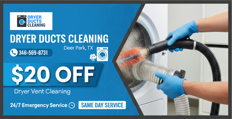 Our team handles residential and commercial systems with equal accuracy ensuring superior circulation and helping enhance dryer efficiency. When you search for vent cleaning near me you’ll find a trusted local provider committed to quality and reliability. Reach out to Deer Park Dryer Duct Cleaning TX today for residential and company service.